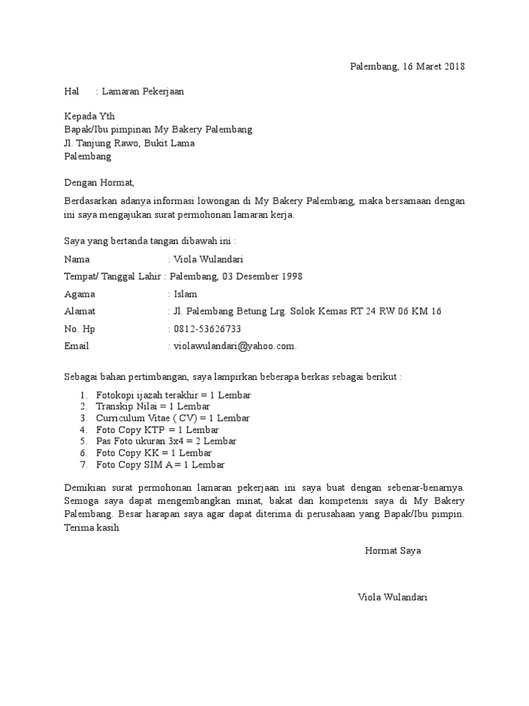 Contoh surat lamaran kerja yang baik dan benar fresh graduate hotel pabrik guru rumah sakit toko bank alfamart atau indomart bahasa inggris dll.