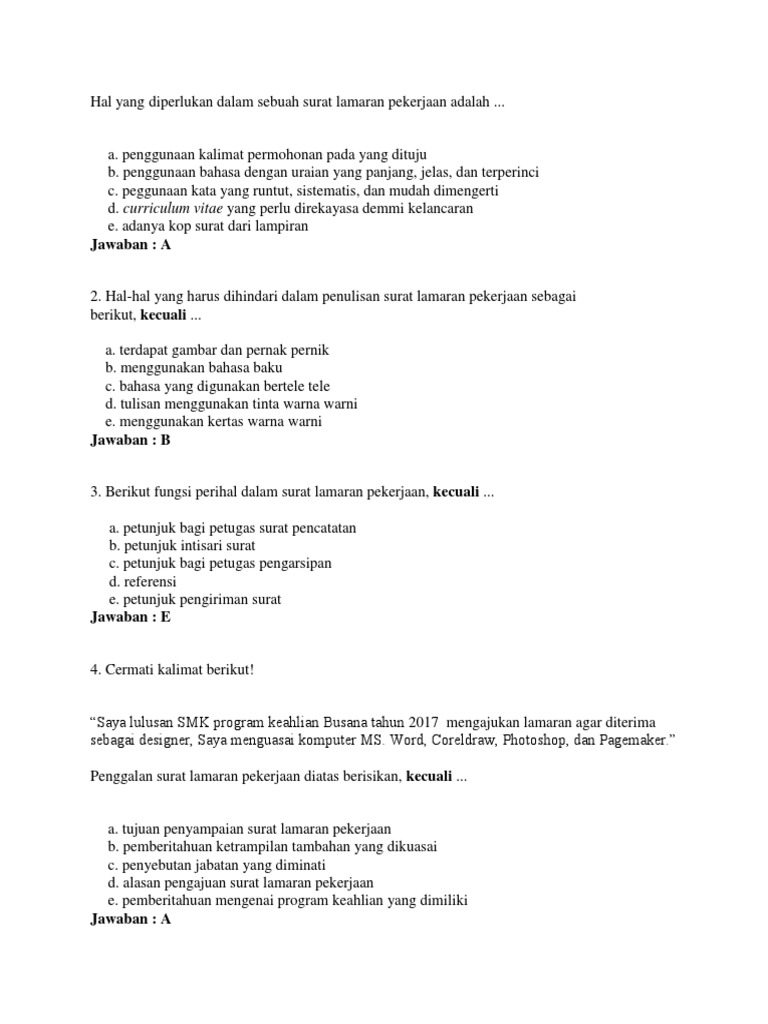 100 Contoh Soal Dan Jawaban Surat Lamaran Kerja E Kelas Com