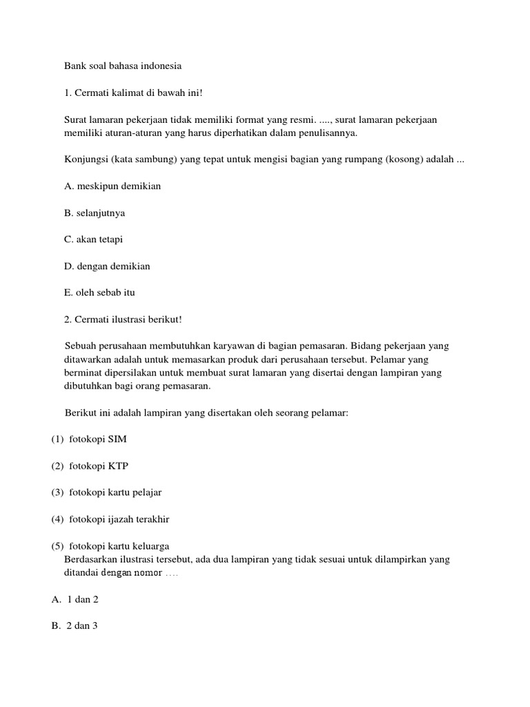 Kumpulan Soal Penilaian Surat Lamaran Pekerjaan Dan Kunci Jawaban