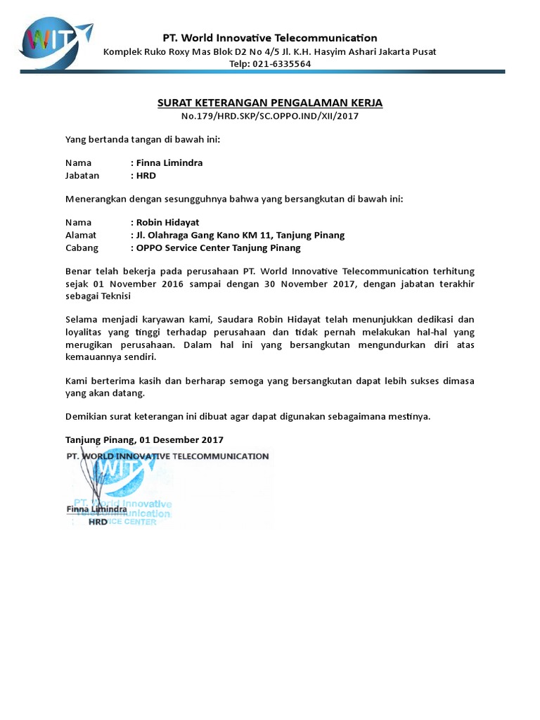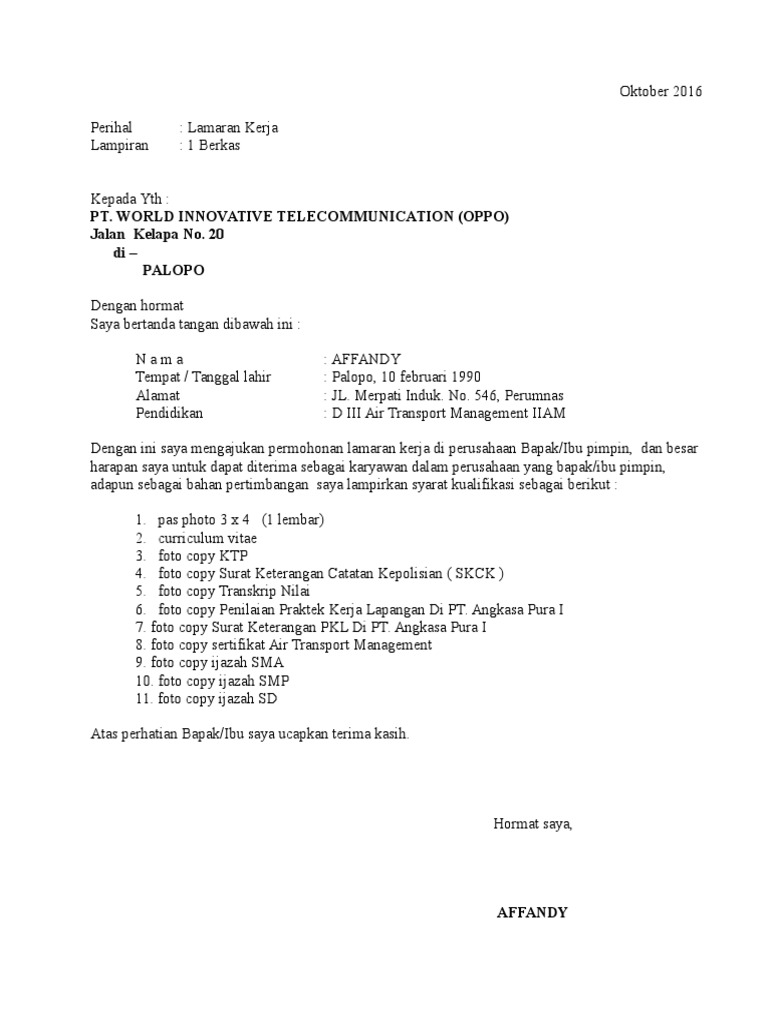 Contoh surat lamaran kerja pt world innovative telecommunication. Bertemu lagi dengan Saya Husnul. Contoh Surat Lamaran Kerja di PT World Innovative Telecommunication. Surat pengalaman kerja jika ada Dokumen pendukung lainnya.