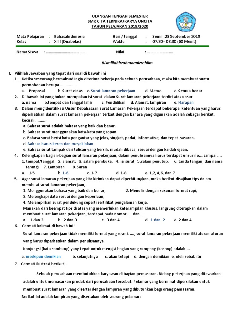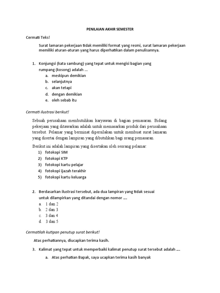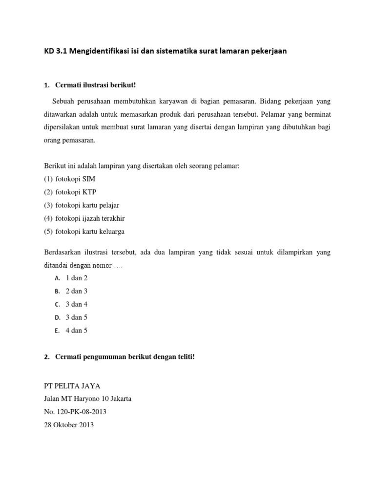 Pilihlah Jawaban Yang Paling Tepat Pilihlah Jawaban Yang Paling Tepat 1 Cermati Kalimat Di Bawah Ini Surat Lamaran Pekerjaan Tidak Memiliki Format Course Hero