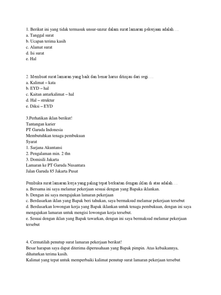 Berikut ini yang tidak termasuk unsur-unsur dalam surat lamaran pekerjaan adalah. Berikut ini yang tidak termasuk unsur-unsur dalam surat lamaran pekerjaan adalah. Contoh soal surat lamaran kerja bahasa indonesia.