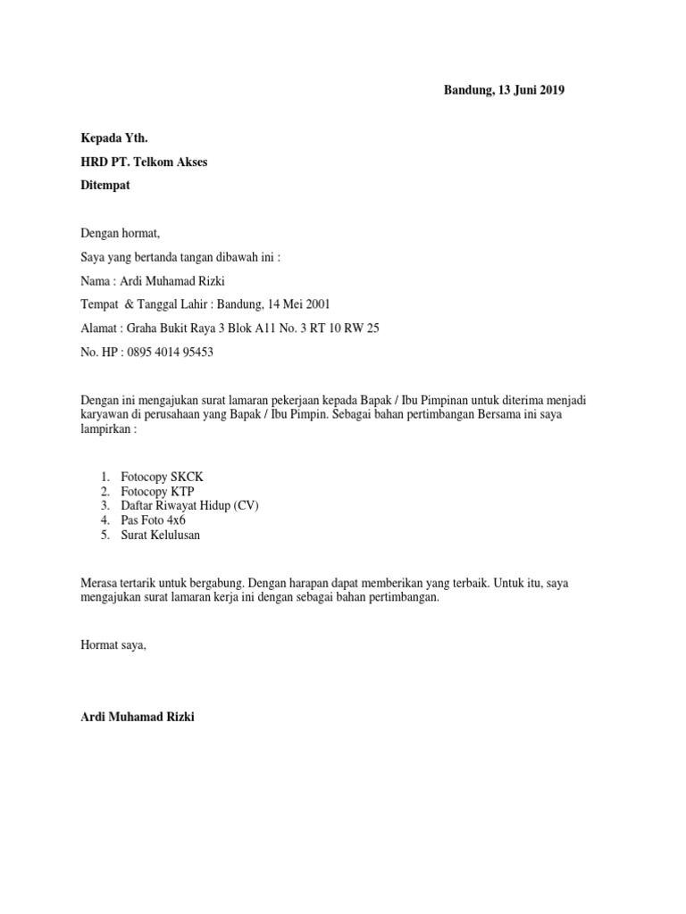 8 Contoh Surat Lamaran Kerja Ke Pt Telkom 8000 Contoh Surat Lamaran Kerja Terbaik Dan Terbaru