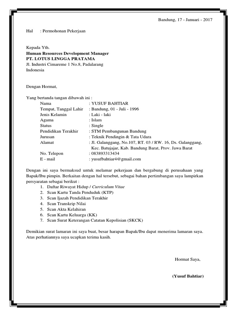 Contoh Surat Lamaran Kerja Yang Baik Dan Benar Kaskus