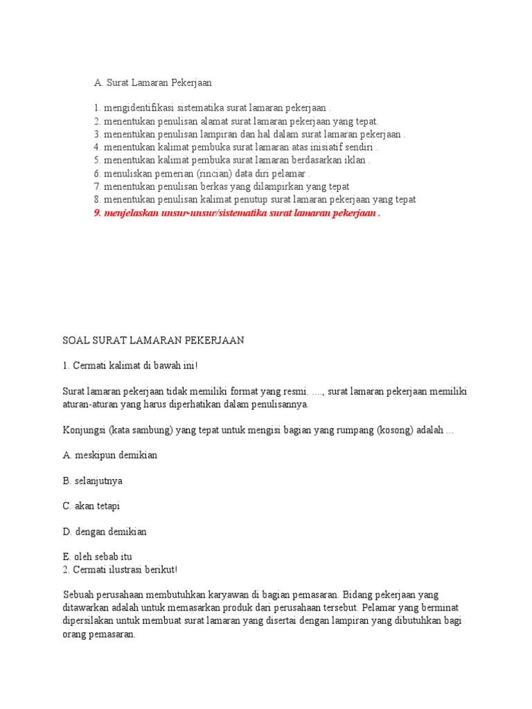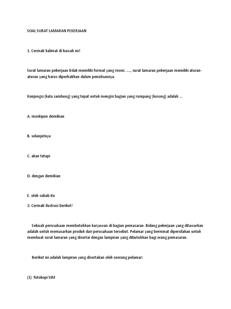 Doc Soal Latihan Materi Surat Lamaran Ziad Abdurrahim Academia Edu