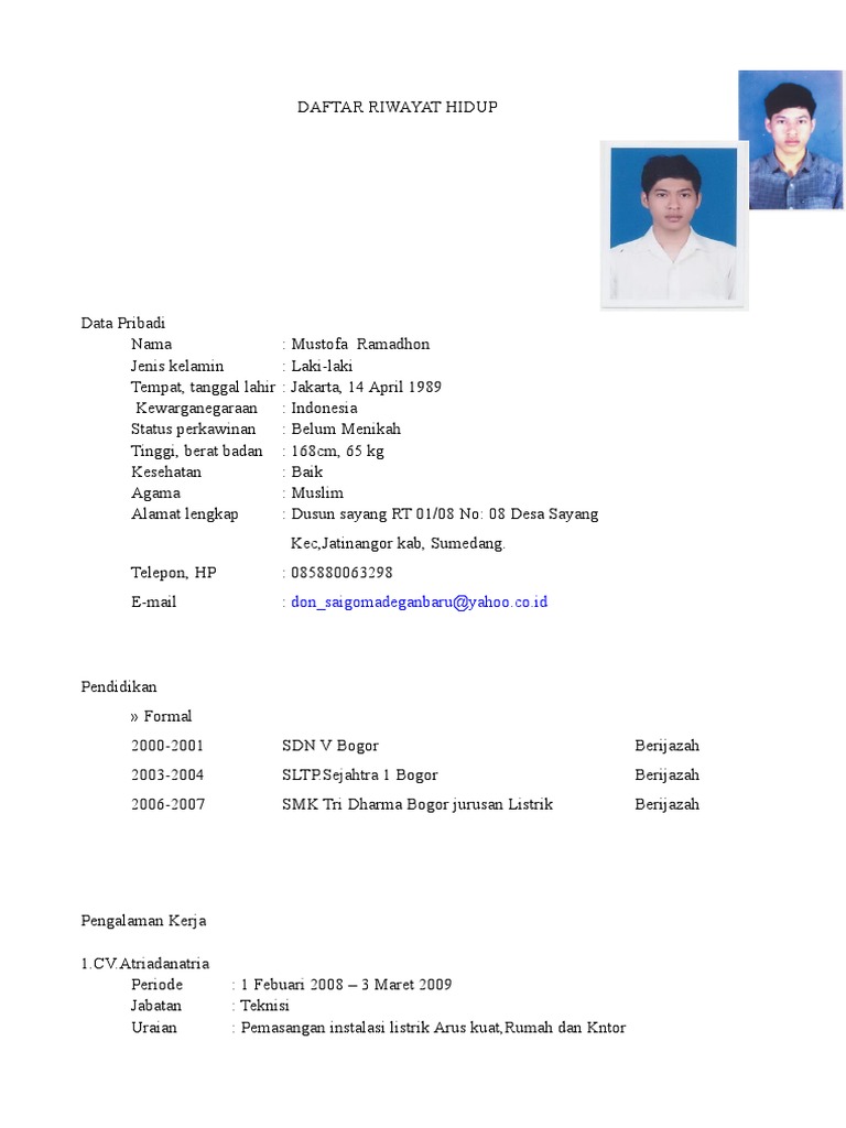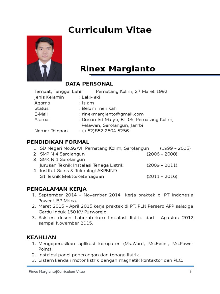 Contoh cv smk jurusan listrik. Peluang Kerja untuk Lulusan SMK Jurusan Listrik 1. Sebenarnya membuat CV Curriculum Vitae yang berisi daftar riwayat hidup itu tak susah susah amat. Program studi TEKNIK INSTALASI TENAGA LISTRIK SMK Negeri 2 Kebumen.