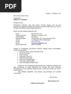 Contoh Surat Lamaran Kerja Dan Cv Tulis Tangan. Surakarta 15 november 2017. Keban Read more Contoh Surat Lamaran.