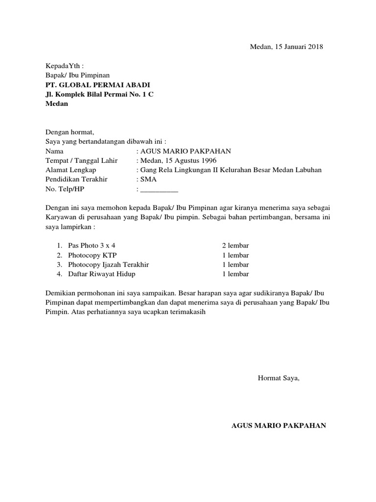 Download Contoh Surat Lamaran Kerja Doc Kumpulan Surat Penting