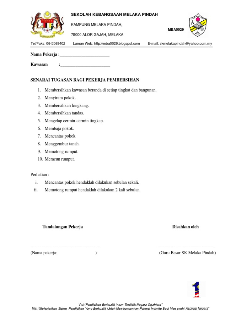 Tugas tukang kebun sekolah. Mengusulkan jenis-jenis tanaman pupuk dan. Jadual Kerja Pekerja Pembersihan. Awalnya senang mendapatkan SP karena derajatnya sama dengan guru tidak tetap.