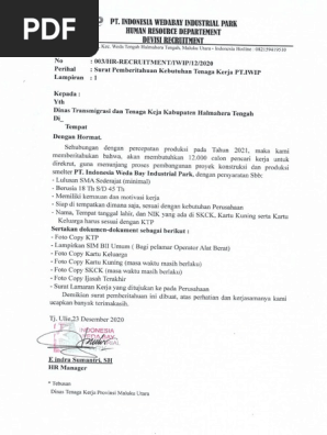 Surat Pemberitahuan Kebutuhan Tenaga Kerja Pt Iwip