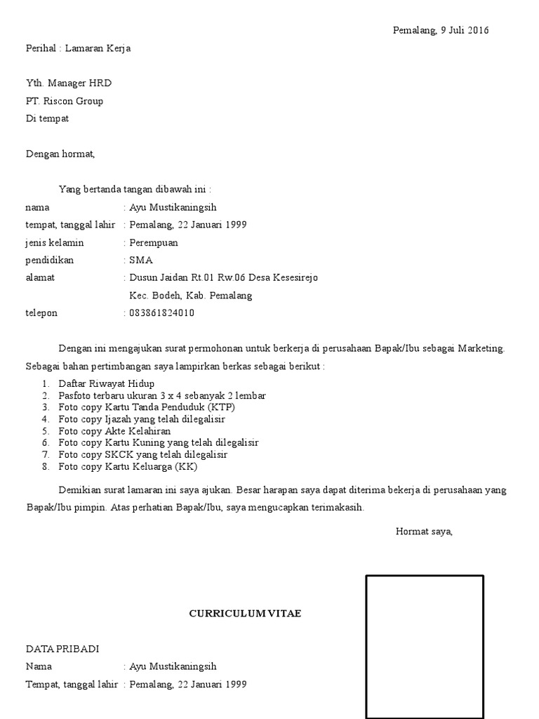 Digital Marketing Surat Lamaran Kerja. Laki-Laki Pendidikan Terakhir. Contoh surat lamaran kerja umum bank karyawan alfamart pt sekolahan formal fresh graduate bahasa inggris via email tulis tangan 4 4.
