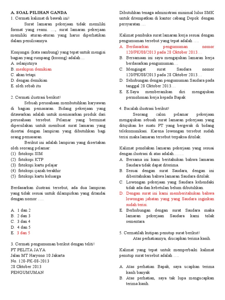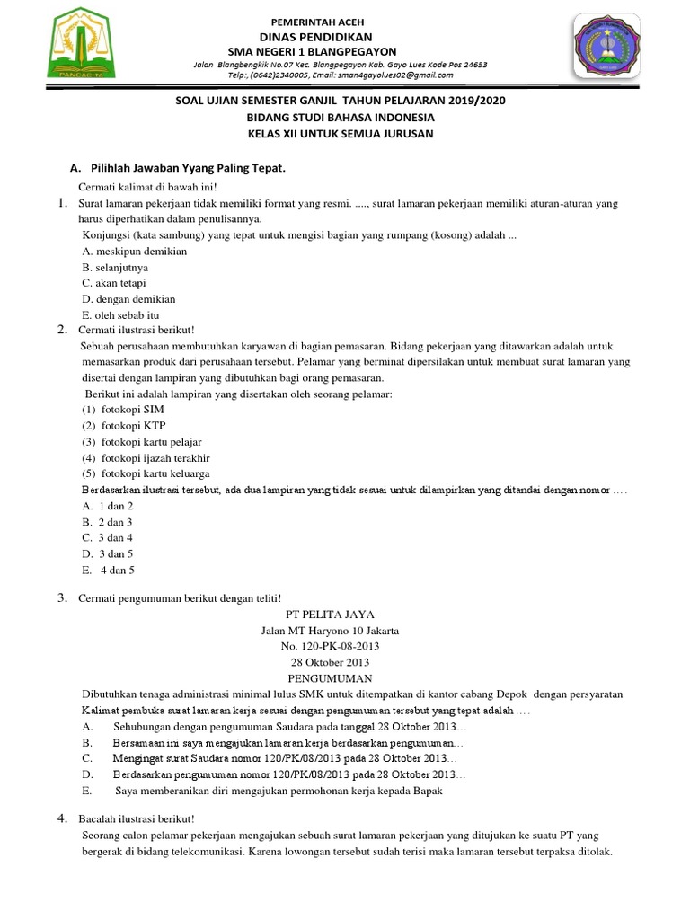 100 Contoh Soal Surat Lamaran Bahasa Indonesia Kelas 12 Sma E Kelas Com