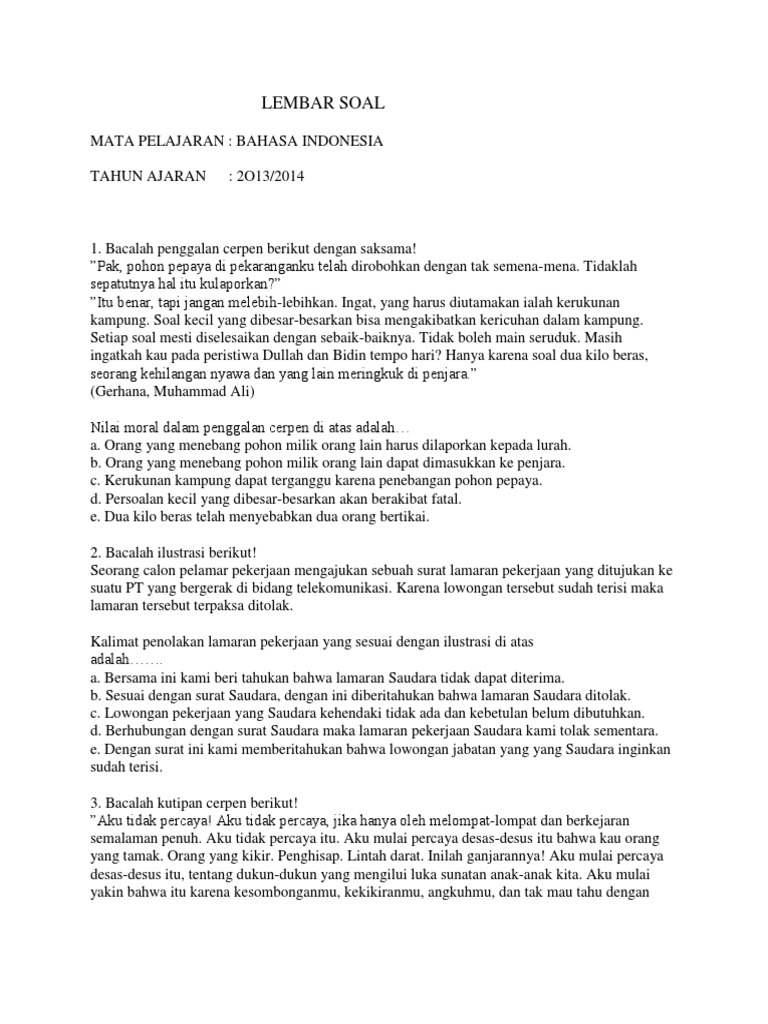 Bahasa Indonesia adalah bidang studi yang di ajarkan di sekolah dari tingkat dasar sampai menengah atas SDSMPSMASMKMA. Karena lowongan tersebut sudah terisi maka lamaran tersebut terpaksa ditolak. Cermatilah kutipan penutup surat berikut.