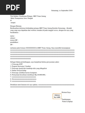 Contoh Surat Lamaran Dengan Tulisan Tangan Seleksi Brt Transjateng