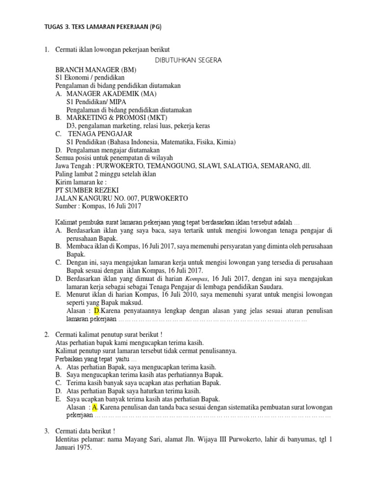 Soal Surat Lamaran Kls Xii K 13 Jawabanku Id