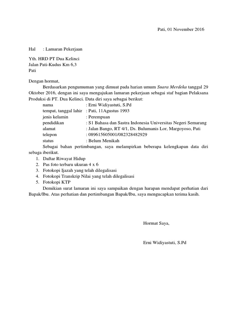 Contoh Surat Lamaran Kerja Di Pt Pwi Jepara Kumpulan Contoh Gambar
