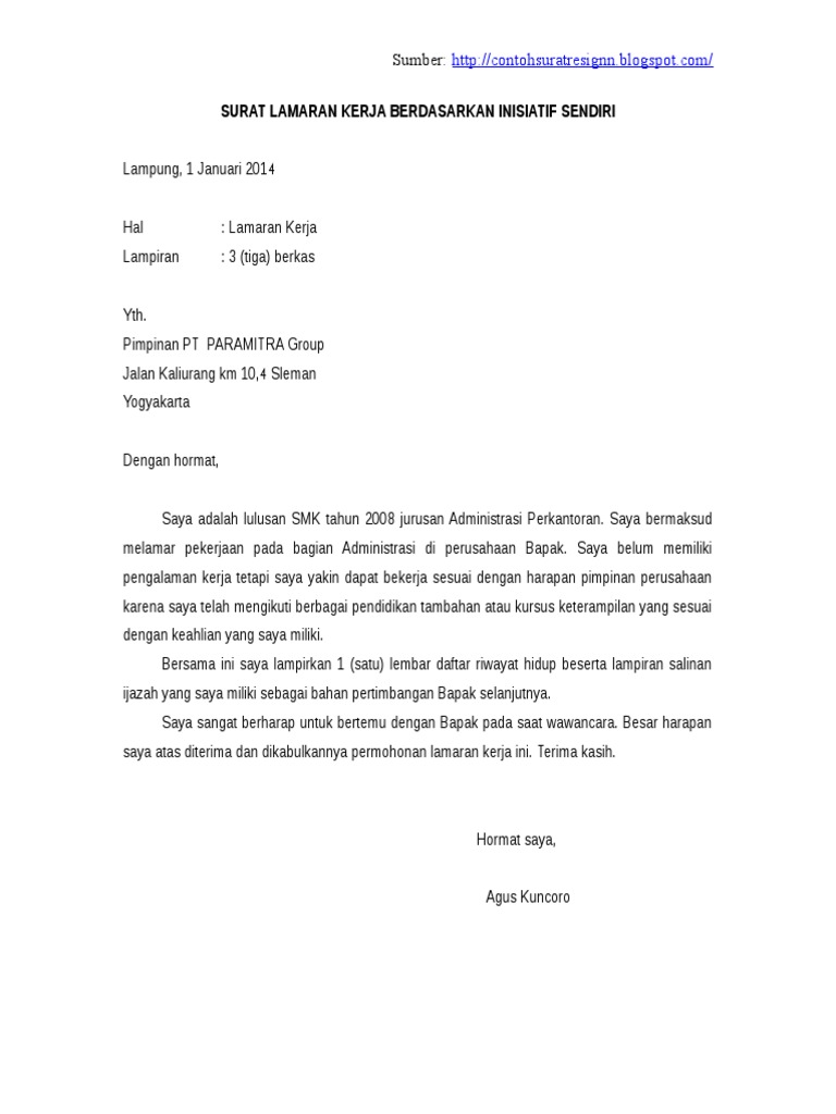Contoh Surat Lamaran Pekerjaan Inisiatif Sendiri Yang Baik Dan Benar Kumpulan Contoh Gambar