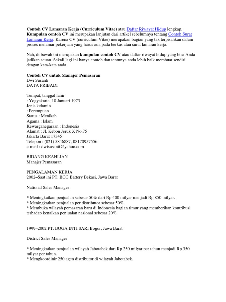 Contoh Cv Lamaran Kerja Terbaru Bahasa Indonesia Dan Bahasa Inggris Berita Tips Status Wa