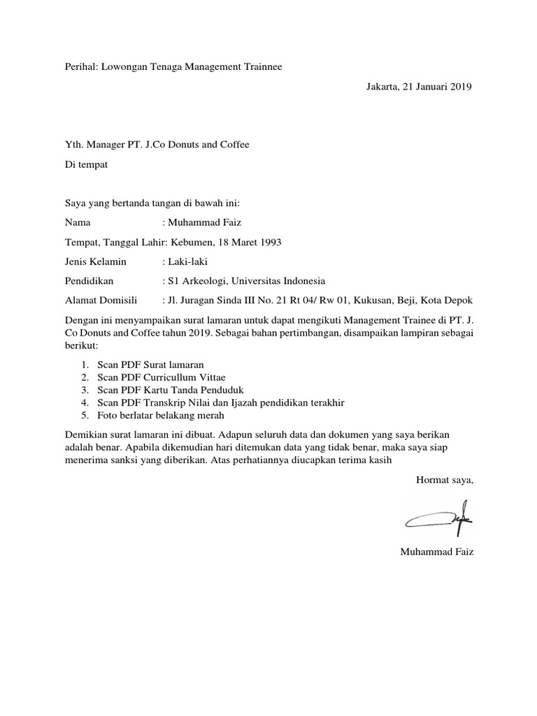 Surat Lamaran Pt J Co Donuts And Coffee Pdf