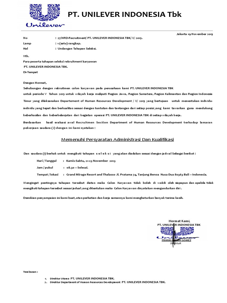 Surat Lamaran Dan Cv Pt Unilever Indonesia Tbk 2